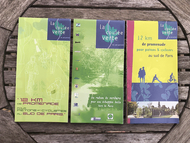 Des carte dépliants sur la Coulée Verte du sud de Paris